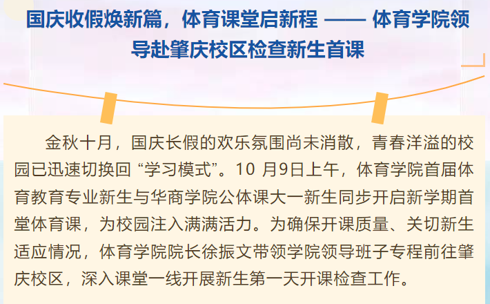 国庆收假焕新篇,体育课堂启新程 —— 伟德国际VICTOR1946领导赴肇庆校区检查新生首课