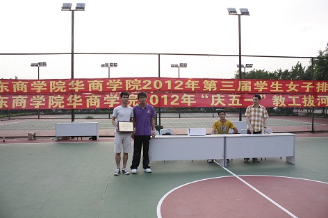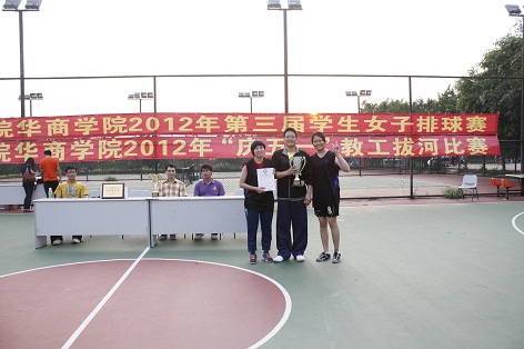 我院第三届学生女子排球赛经过6天的激烈角逐,于2012424星期二下午在我院排球场落下帷幕。全院8各队经过紧张激烈的争夺,最终旅游管理系获得冠军,工商管理系获得亚军,会计系获得季军,艺术系获得体育道德风尚奖,陈慧敏等6位选手获得优秀运动员称号。闭幕式上,体育教学部领导为以上获奖单位和个人颁发了证书和奖牌,并一起合影留念。