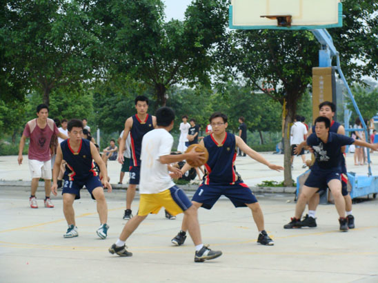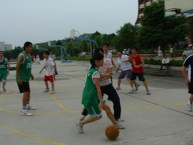 2009年6月9日星期二,虽然早上天公不作美,下了些,但是仍然阻挡不了华商学院教职工的一股激情。华商学院首届男女教职工混合篮球赛于下午5点45分在学院篮球场准时开赛。此次比赛,全院的各系、部门都组队参赛了,共有9支队伍参加本次比赛,参赛人数达110人之多。具体参赛队伍有:行政一队(院办、教务处处)、行政二队(学生处、招生办、图书馆)、行政三队(集团办、采购部、财务处、人事处)、行政四队(总务处、保卫处)、企业管理系、会计系、经济系、艺术系、联队(旅游管理系、外语系、文学系、思想政治部)。本次比赛是体育教学部承办的,所有体育老师为本次比赛的裁判员。学院领导、各系、部都很重视这次集体活动,学院主要领导、各系、部主任都亲临现场,观看了比赛,为队员加油助威。