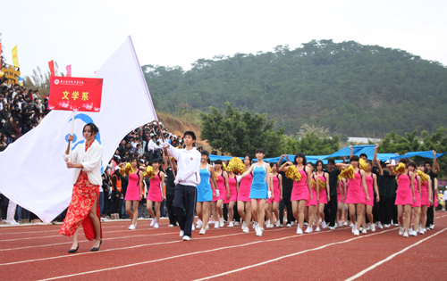 跆拳道、武术表演及由200位大二女生带来的健美操表演及各系的啦啦操比赛拉开了运动会的帷幕,点燃了现场观众激情,欢乐与热情充满了整个运动场。(本报讯 记者曾妙焮 陈思敏)