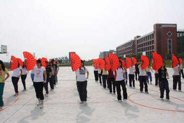 功夫扇又称第一套太极功夫扇、52式太极功夫扇。太极功夫扇是在太极拳基础上作扇子开合运动,动作缓慢、轻柔、灵活,使武术动作与优美歌曲旋律巧妙结合,揉合了不同的太极流派风格,以及快速有力的长拳、南拳、京剧舞蹈动作等等,内容丰富新颖,载歌载“武”,而且易学易练,是陶冶情操、强身健体深受大众喜爱的群众性体育项目。本课程统一在室外进行教学,其主要学习内容包括太极功夫扇的前三段,要求学生自备功夫扇(右手),常规运动着装。