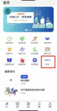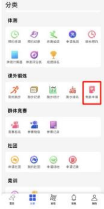 5.1 在体适能 App 首页界面, 点击“ 更多 ”,在课外锻炼页面点击“ 免跑申 请 ”
