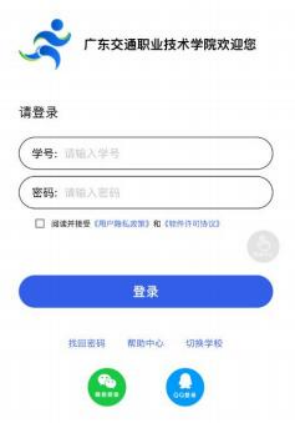 1.3 选择“ 我的 ”,输入学号和初始化密码“stu123456”,点击阅读并接受用 户隐私协议, 然后点击“ 登录 ”,登录成功后系统会提示更改密码。