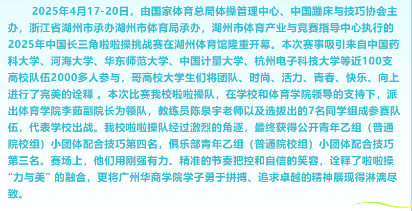 上一条:【喜报】|热烈祝贺我校羽毛球女双组合斩获大运会甲组第八名! 下一条:再创佳绩--我校女子足球队荣获2025年广东省大学生女子足球锦标赛一等奖